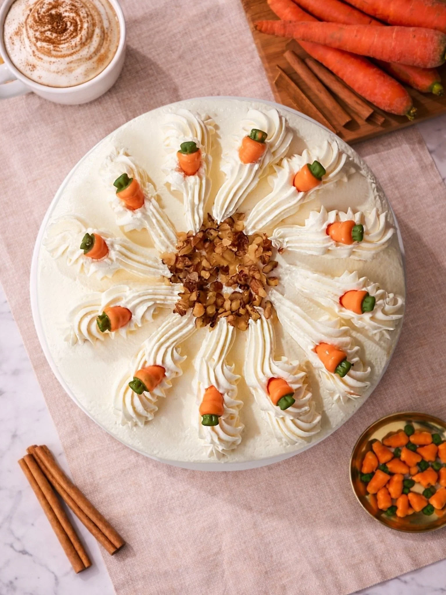 Playful Decorative Topping: Topped with charming mini chocolate carrots, adding a delightful finishing touch thatās both eye-catching and indulgent.