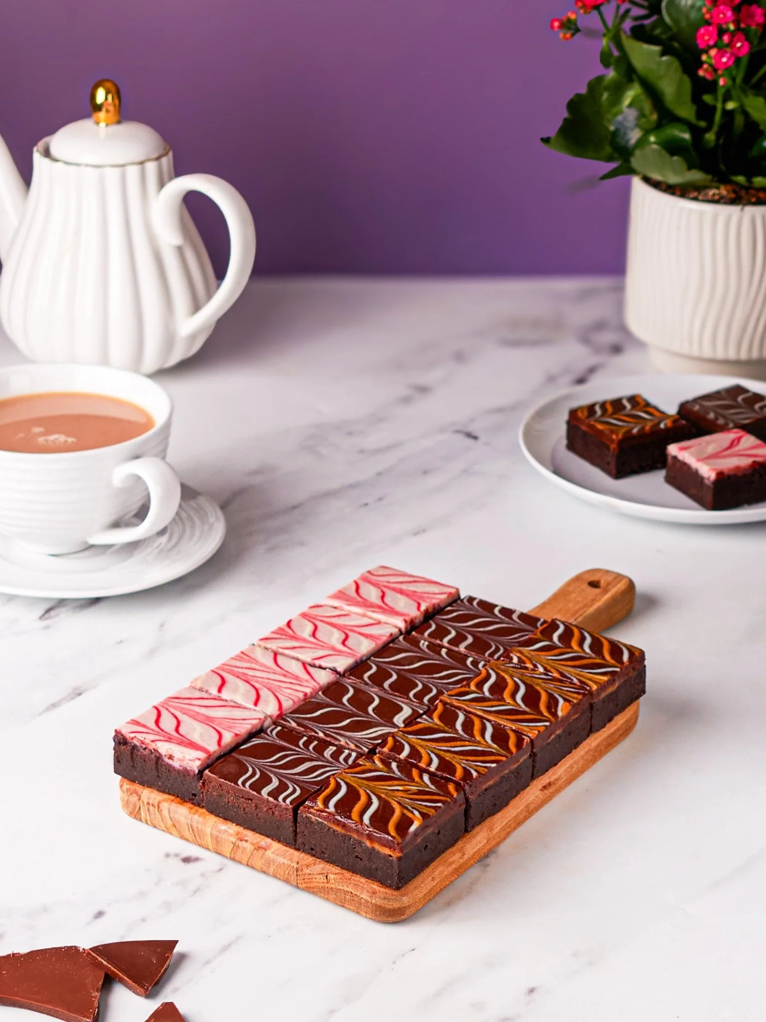 Indulge in Patisserie Valerieās new irresistible chocolate fudge brownie squares. With three mouth-watering flavours, this selection is sure to delight any chocolate lover. Delivered in a beautifully designed Pat Val gift box, itās the ideal surprise for someone special. Each box contains 12 brownies ā 4 of each flavour: